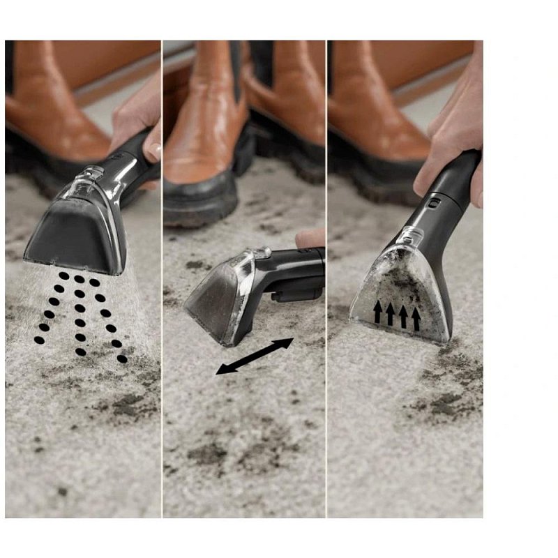Čištění se systémem Triple action: Nastříkejte, vykartáčujte a vysajte špínu, skvrny a nečistoty z koberců, čalounění a schodů v jednom kroku