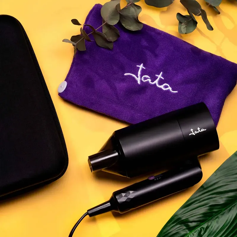 Součástí balení je praktické polotuhé pouzdro a mikrovláknová turbanová osuška, takže máte vše pro rychlou a šetrnou péči o vlasy vždy po ruce.