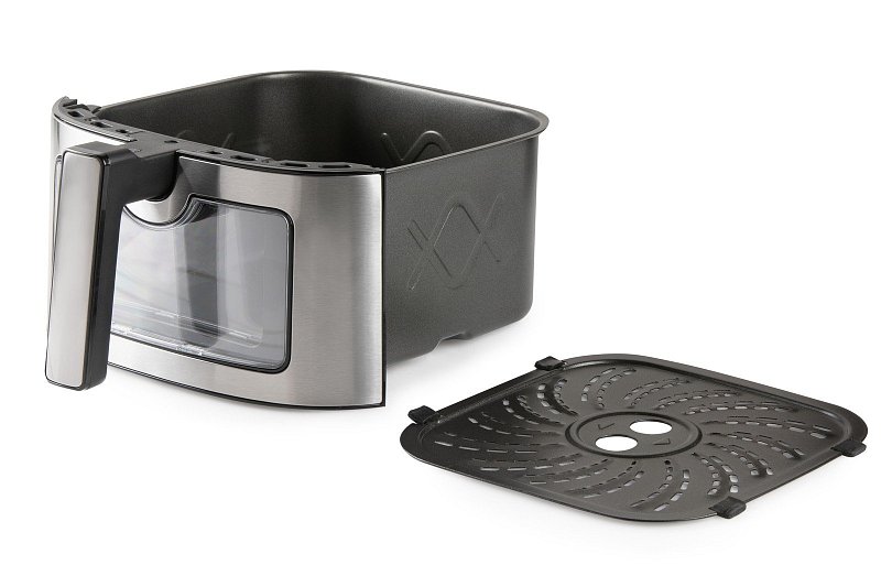 Fritovací nádoba praktického hranatého tvaru o objemu 6 litrů pojme až 1,5 kg surovin a vyjímatelná mřížka na dně nádoby umožní zachytit na dně nádoby výpek ze surovin. S kapacitou 6 litrů a 6 automatickými programy snadno připravíte hranolky, steaky, ryby, kuře, a dokonce i koláč.