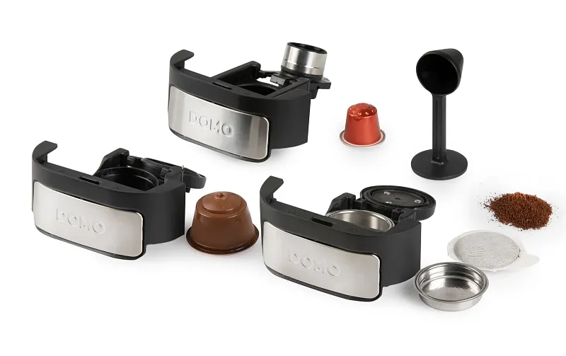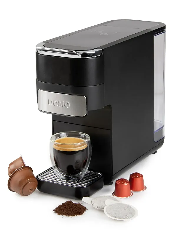 DOMO DO748K je chytrý kávovar 4v1, který vám otevře svět kávy bez omezení. Ať už milujete kapsle Nespresso, Dolce Gusto, ESE pody nebo klasickou mletou kávu, tento přístroj se přizpůsobí přesně vašim chutím. Jeden kompaktní kávovar – nekonečné možnosti.
