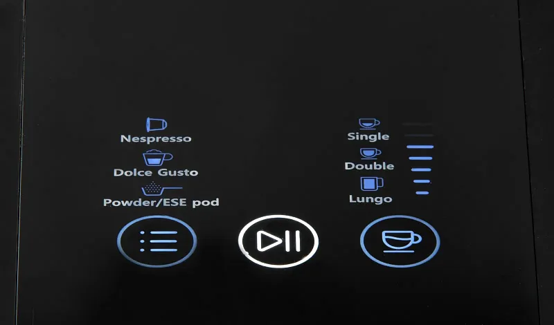 Velikost šálku lze nastavit pro Nespresso a filtrovanou kávu, pro Dolce Gusto je k dispozici několik úrovní.