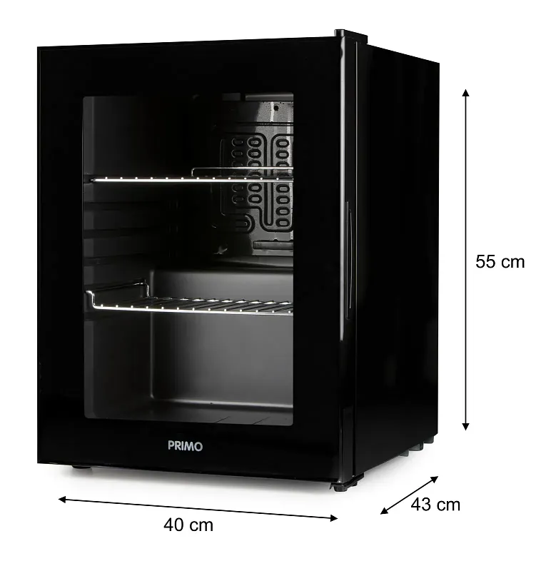 Domácí chladnička nápojů PRIMO PR193BC s objemem 33 litrů a 2 kovovými policemi nabízí dostatek chladicího prostoru.