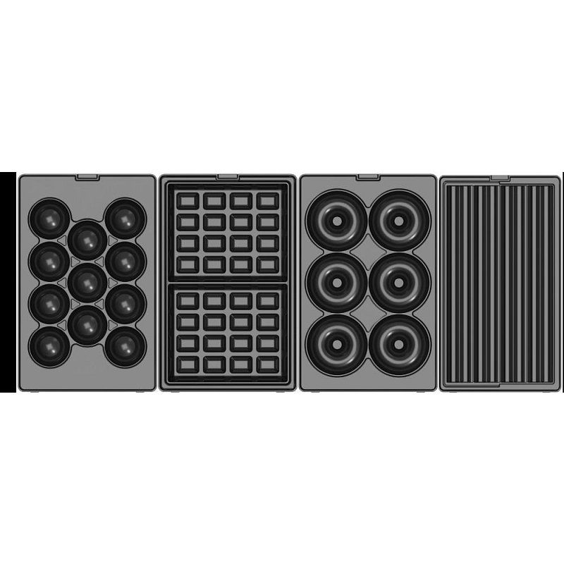 4 páry vyměnitelných nepřilnavých desek, (vafle, donuty, dortové kuličky, churros)