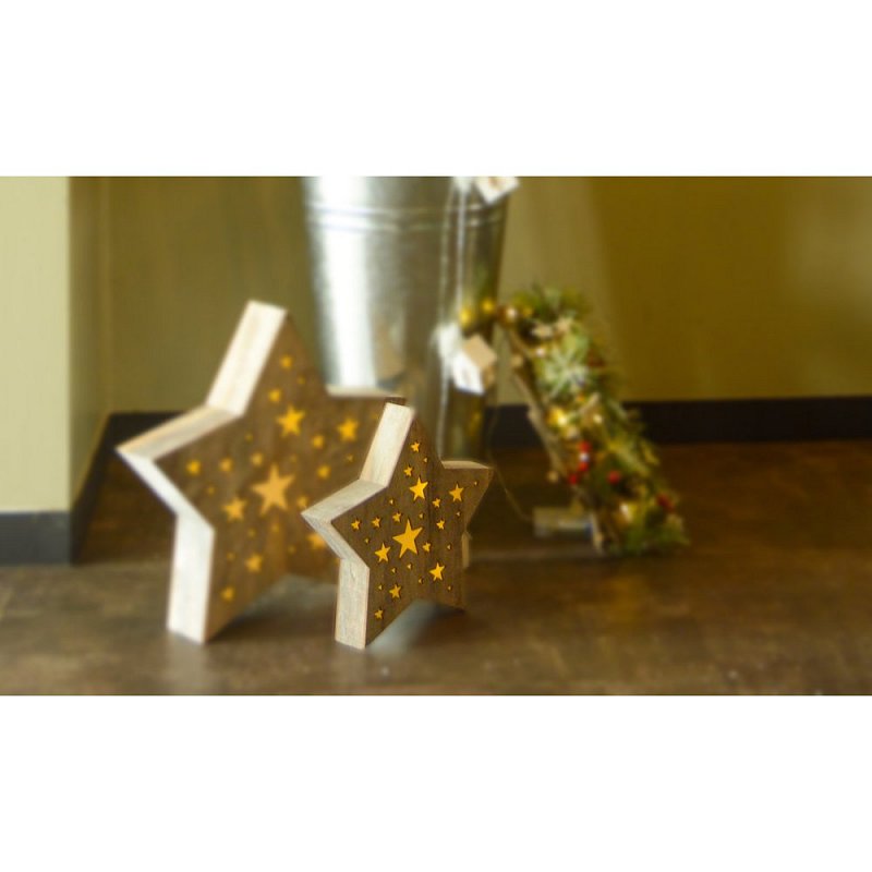 Vánoční dekorace - hvězda dřevěná s perforací ve tvaru hvězdiček
