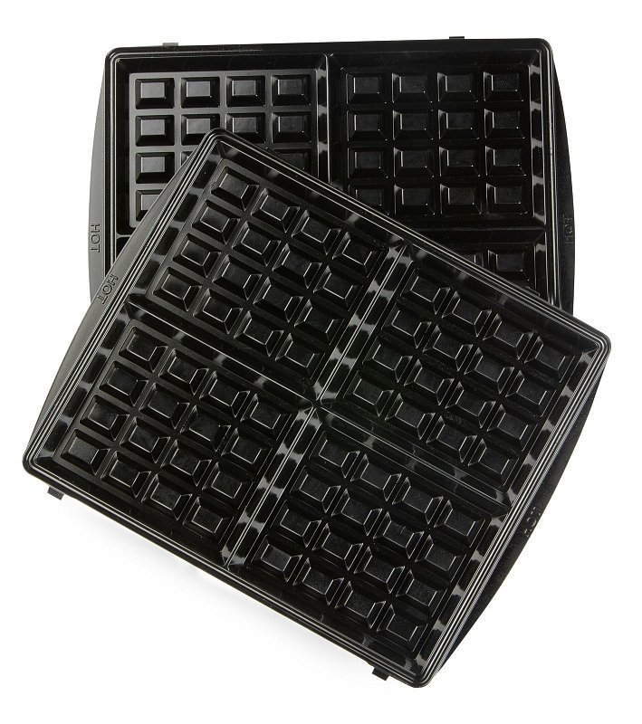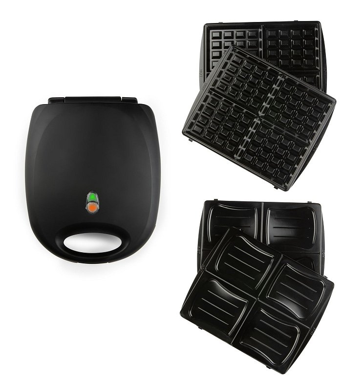 Díky dvěma vyměnitelným sadám desek můžete snadno připravit čtyři sendviče nebo čtyři vafle.