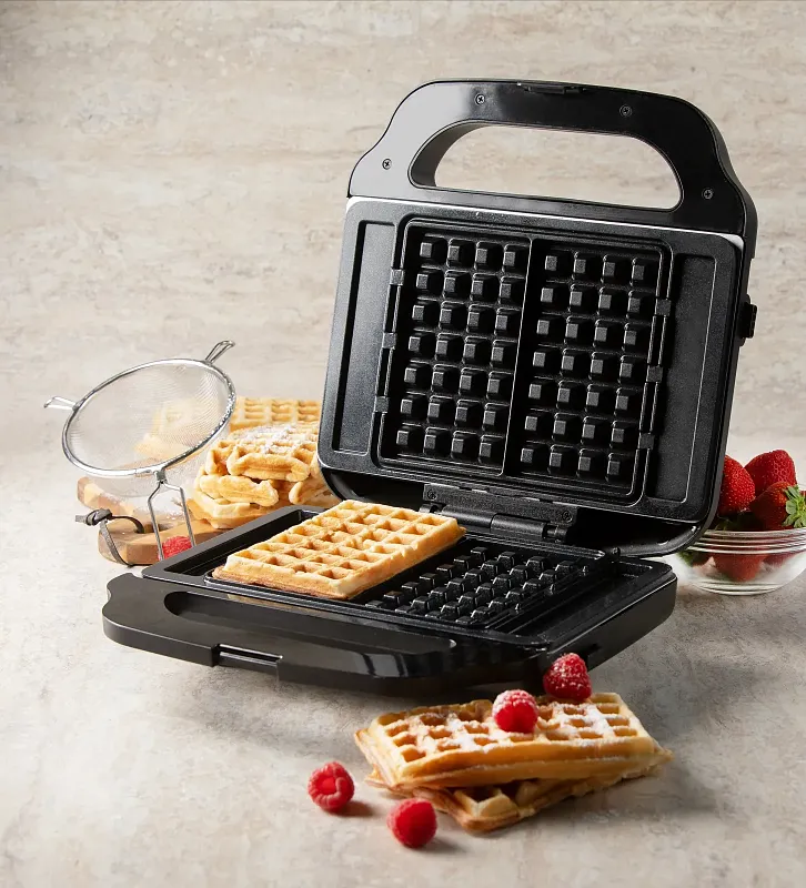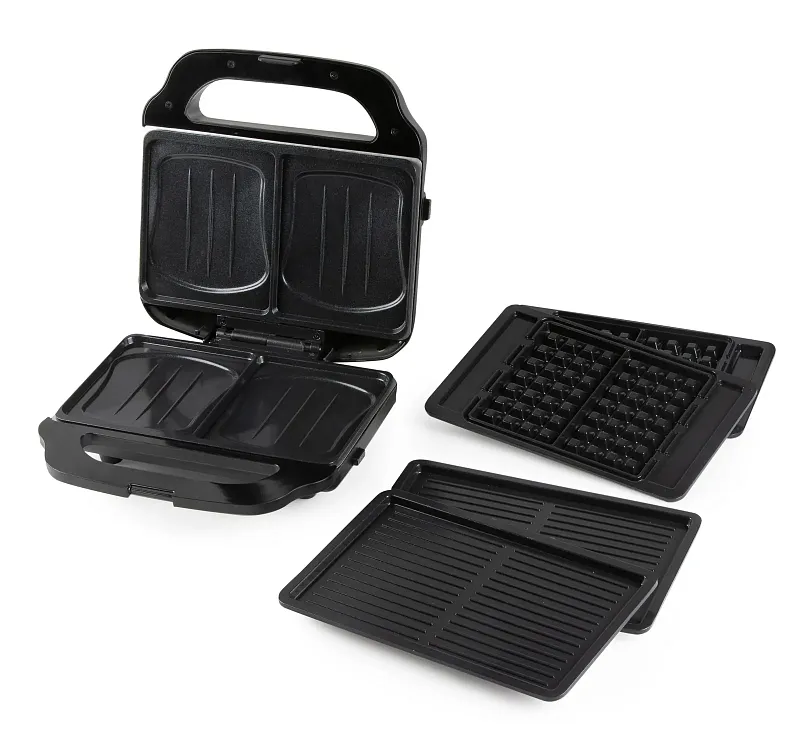 Obsahuje tři vyměnitelné sady desek pro XL toastové sendviče (o 50 % větší než standardní velikost), vafle belgického typu (4x7) a grilovaná jídla.