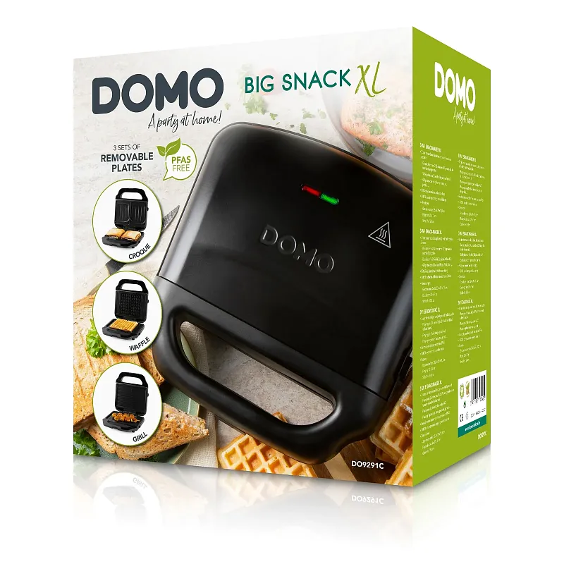 DOMO DO9291C Big Snack XL 3v1 v matně černém provedení je univerzální a vysoce výkonný přístroj pro každodenní použití.