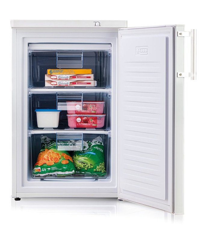 Volně stojící šuplíkový mrazák s velmi úsporným provozem energetické třídy C v bílé barvě s odkládací plochou nahoře. Kompaktní rozměry a výška do 85 cm jej předurčují k použití v rekreačních objektech, nebo jako vhodné rozšíření mrazící kapacity vaší kombinované lednice. Dveře mrazáku zdobí velké madlo z broušeného nerezu.