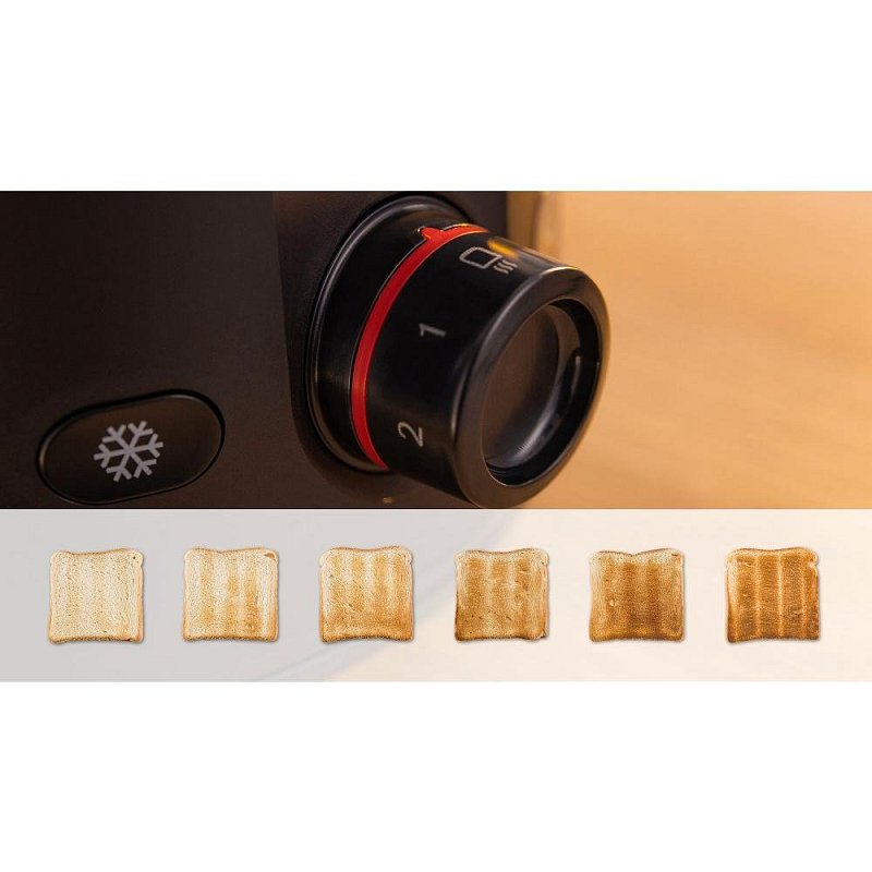 Nabízí 7 úrovní nastavení opékání, takže si můžete vybrat, jak moc si přejete, abybyly vaše topinky opečené