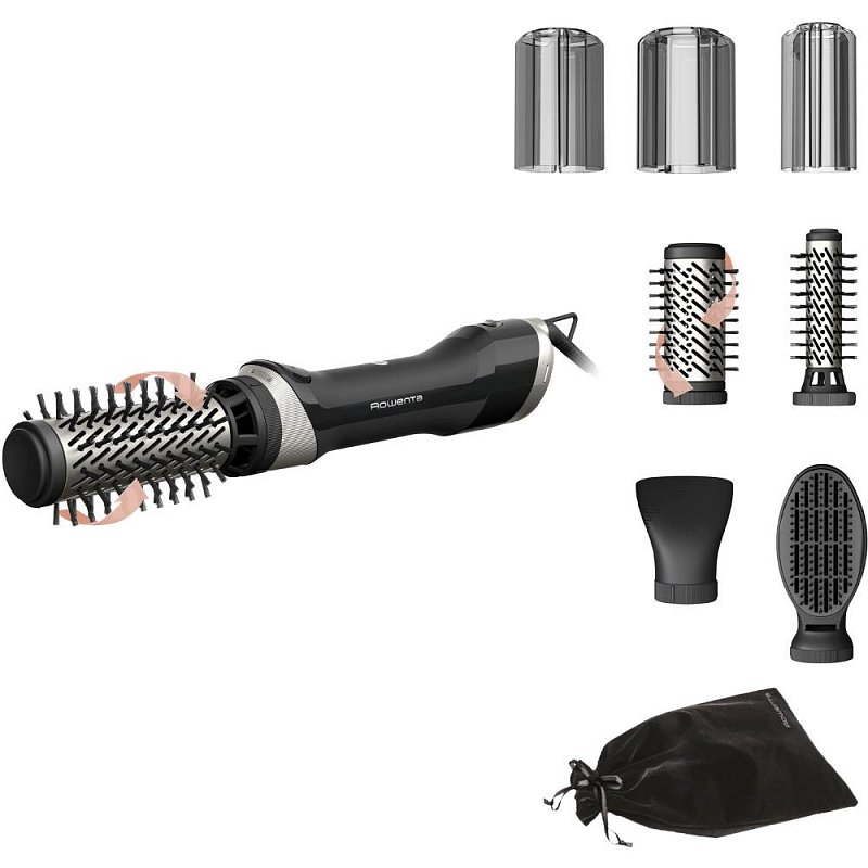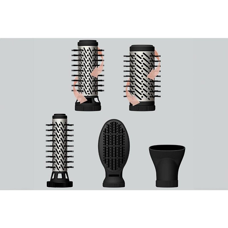 3 rotační keramické kartáče (30/40/50 mm) pro pokrytí všech typů vlasů, plus koncentrátor a lopatkový kartáč